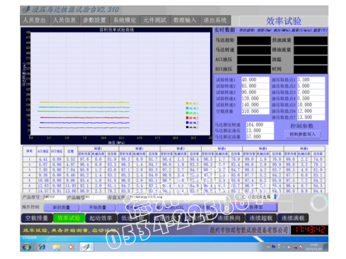 跑合試驗(yàn)、空載排量試驗(yàn)、效率試驗(yàn)、起動(dòng)效率試驗(yàn)、低速性能試驗(yàn)、